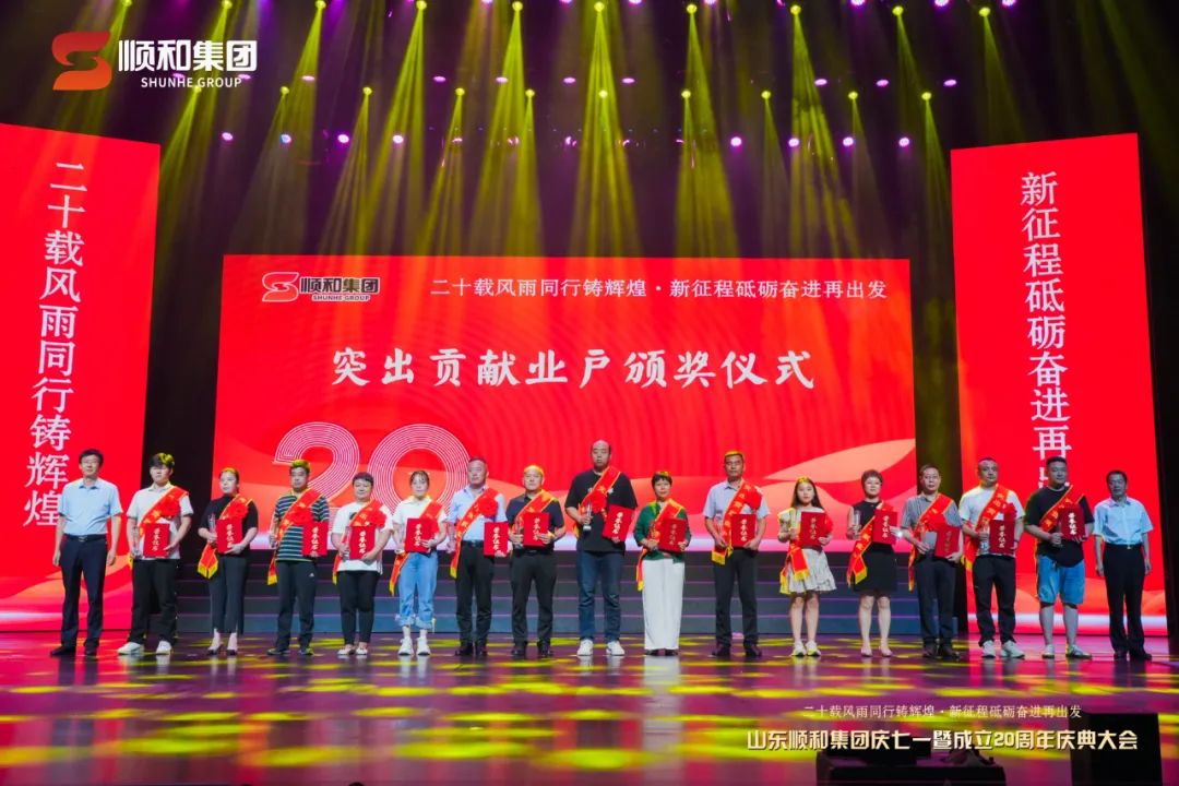 20年風(fēng)雨兼程,順和集團、李莊社區(qū)從勠力同心的奮斗中大步走來;20年崢嶸歲月,順和集團在商貿(mào)物流轉(zhuǎn)型升級的新征程中闊步前行;20年春華秋實,順和集團一路高歌猛進、碩果累累,順和人、李莊人用雙手和智慧書寫了跨越式發(fā)展的壯麗詩篇。7月3日“二十載風(fēng)雨同行鑄輝煌 新征程砥礪奮進再出發(fā)”山東順和集團慶“七一”暨成立20周年慶典大會在臨沂大劇院(歌劇廳)圓滿舉行。現(xiàn)場1000多位順和家人、商界同仁以及合作伙伴匯聚一堂,共同回顧順和集團20年的光輝歷程,展望璀璨未來,共度美好時光。