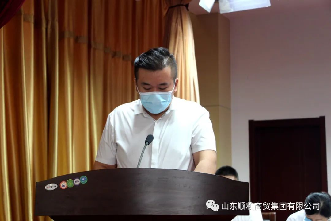 大會在莊嚴(yán)的國歌聲中正式開始。會上,集團(tuán)黨委副書記、總經(jīng)理趙國偉傳達(dá)上級文件:《臨沂商城轉(zhuǎn)型升級實施方案(2022—2026年)節(jié)選》。順和國際、順和物聯(lián)、臨沂電動自行車市場、集團(tuán)企業(yè)管理辦公室、供應(yīng)鏈金融部、安全管理辦公室、商貿(mào)物流研究院的主要負(fù)責(zé)人依次就上半年重點工作完成情況和下半年主要工作計劃進(jìn)行表態(tài)發(fā)言。
