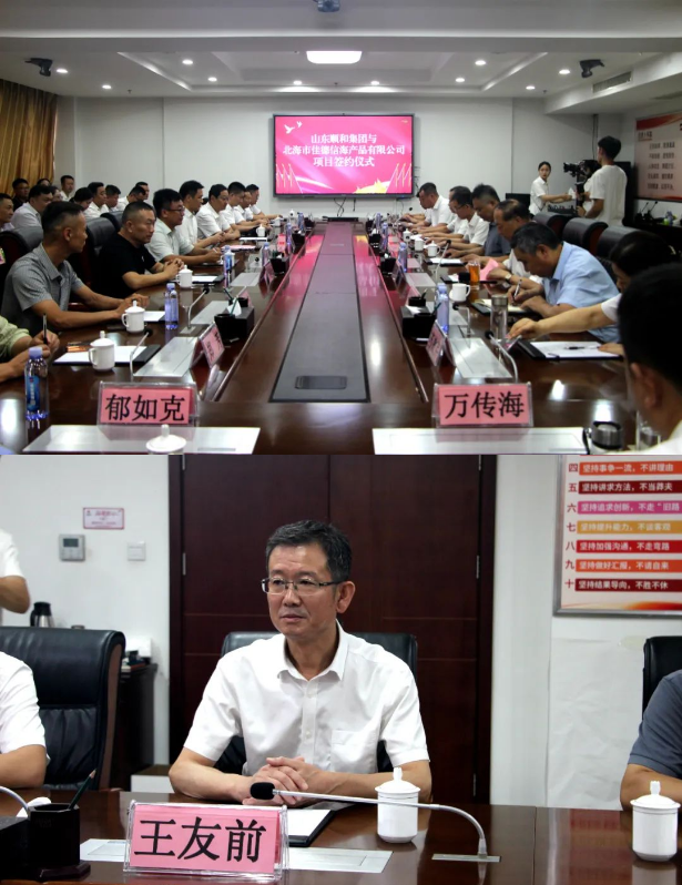 7月21日上午,山東順和集團(tuán)與北海市佳德信海產(chǎn)品有限公司項(xiàng)目簽約儀式在順和集團(tuán)隆重舉行。蘭山商城管委會(huì)副主任、黨委委員王友前,蘭山街道黨工委書記姜修偉,蘭山區(qū)市場(chǎng)監(jiān)管局黨組書記齊寶進(jìn),北海市佳德信海產(chǎn)品有限公司董事長(zhǎng)孫紅雷及運(yùn)營(yíng)團(tuán)隊(duì)成員,順和集團(tuán)黨委、董事會(huì)、監(jiān)事會(huì)、李莊社區(qū)兩委成員,各企業(yè)、直屬部門負(fù)責(zé)人及相關(guān)工作人員參加。儀式由集團(tuán)黨委副書記、董事長(zhǎng)趙國(guó)偉主持。